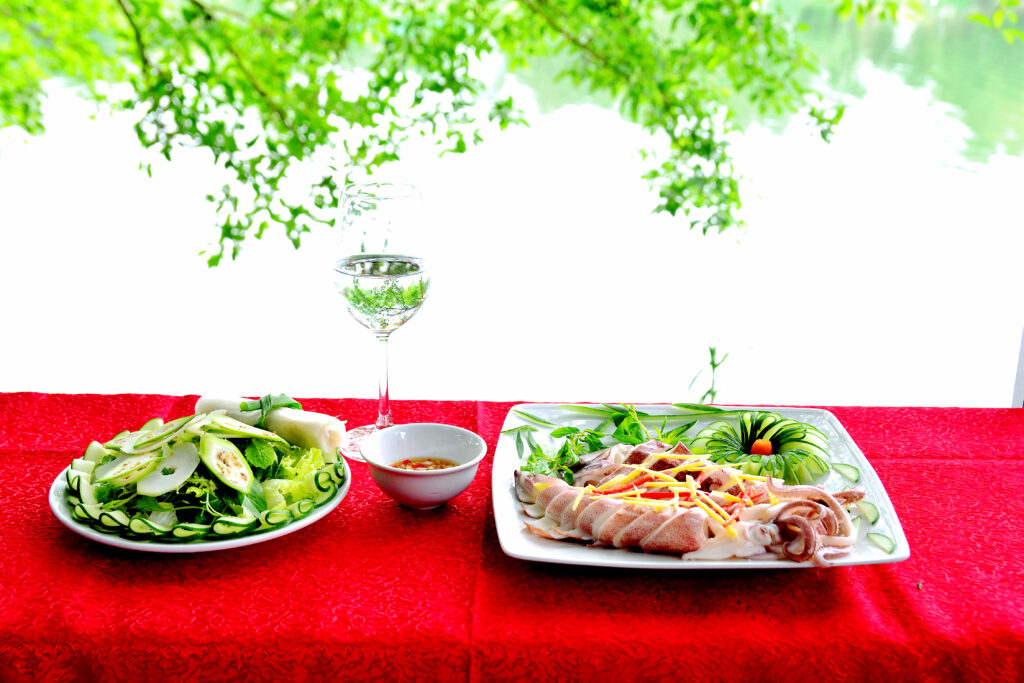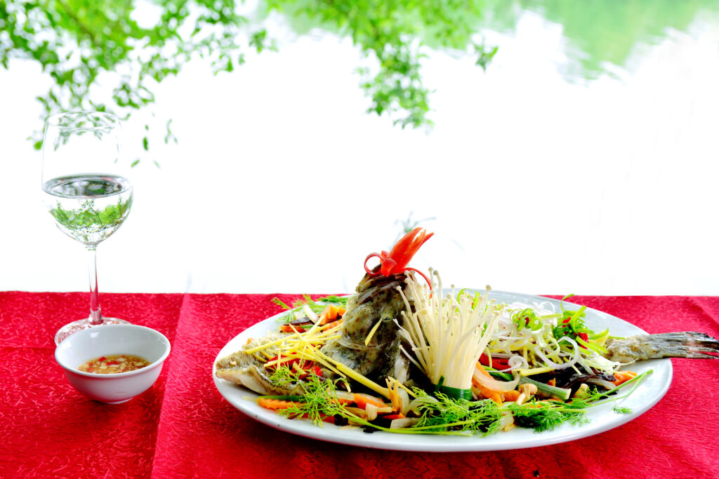 Ngay tại khách sạn, Quý khách có thể thưởng thức tinh hoa ẩm thực mang đậm bản sắc Huế và hương vị Việt, sự đa dạng trong từng thực đơn với những món ngon được tuyển chọn từ những nguyên liệu tươi ngon, đảm bảo nhất. Không những vậy dưới bàn tay của những đầu bếp chuyên nghiệp và tài hoa càng làm tăng thêm hương vị của món ăn để khách hàng có thể thưởng thức một cách trọn vẹn nhất.